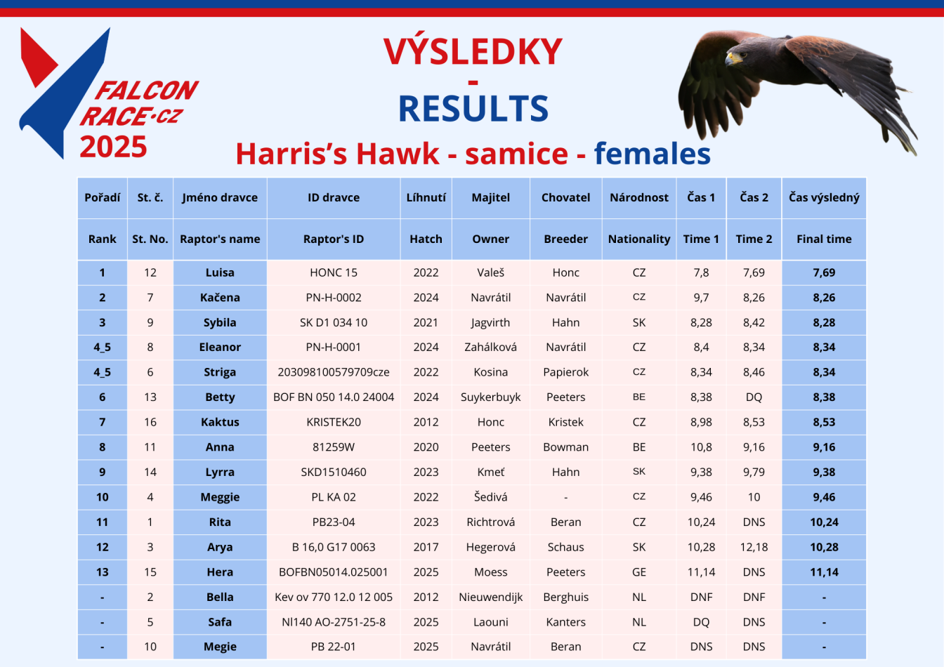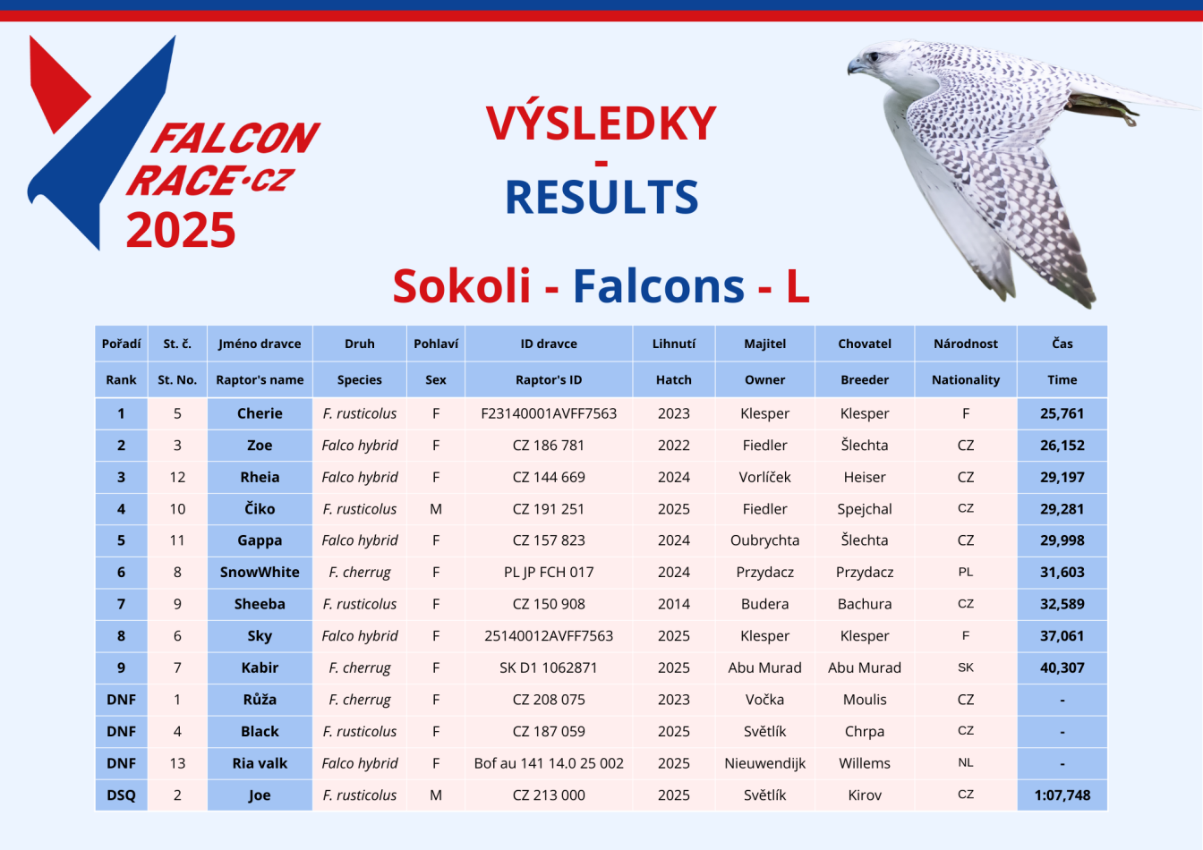 As of 25.7.2024 we are members of the International Federation of Falconry Sports and Racing (IFFSR) >>